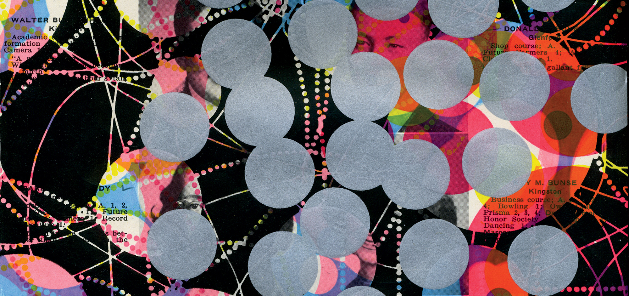 Andrew J Buboltz, silk screen on a page from a high school yearbook, 8.5″ x 12″, 2011 Tamar Cohen